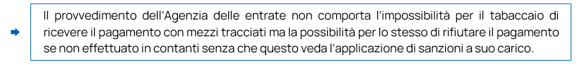 La seconda motivazione attiene invece al diverso approccio in merito alla tracciabilità dei prodotti di monopolio. Nel settore dei tabacchi, infatti, esiste già da sé, senza necessità di tracciamento dei pagamenti, un flusso di tracciabilità che permette di controllare la corretta fonte dei prodotti e il corretto versamento del dovuto all’Erario.