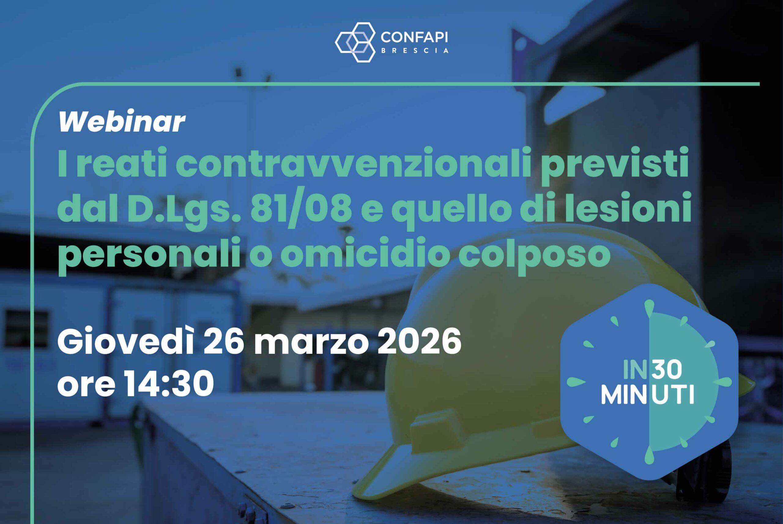 Per navigare con consapevolezza tra ispezioni e responsabilità, Confapi Brescia propone l’appuntamento formativo «I reati contravvenzionali previsti dal TU/’08 e quello di lesioni personali o omicidio colposo».