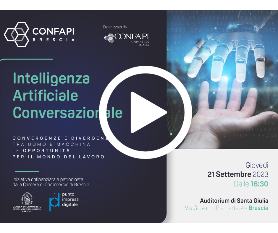 Clicca sull’ immagine di seguito per seguire in streaming il convegno dal titolo «Intelligenza Artificiale Conversazionale: Convergenze e divergenze tra uomo e macchina: le opportunità per il mondo del lavoro“» che si terrà giovedì 21 settembre alle 16:30.