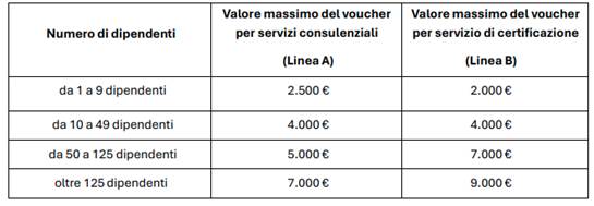 Il valore dei voucher non potrà in ogni caso superare gli importi di seguito indicati,