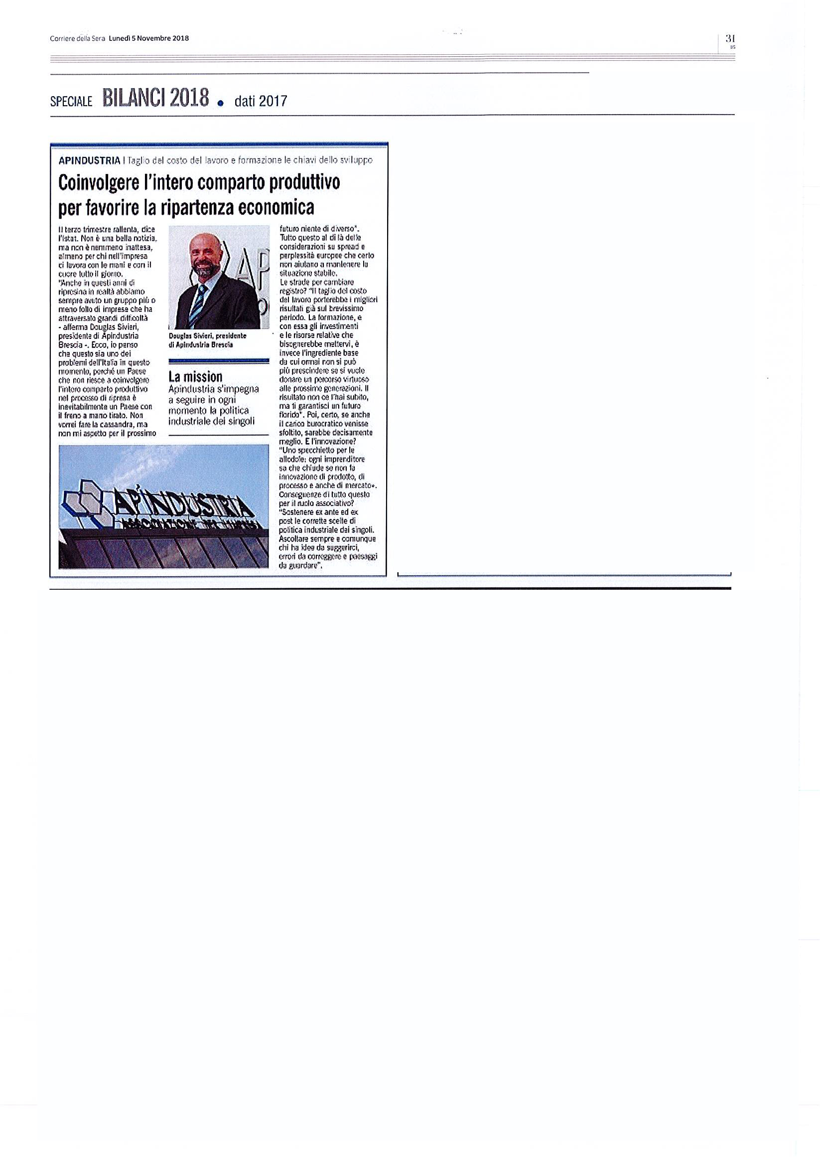 Giornale di Brescia, Bresciaoggi, Corriere della Sera del: 2018-11-20