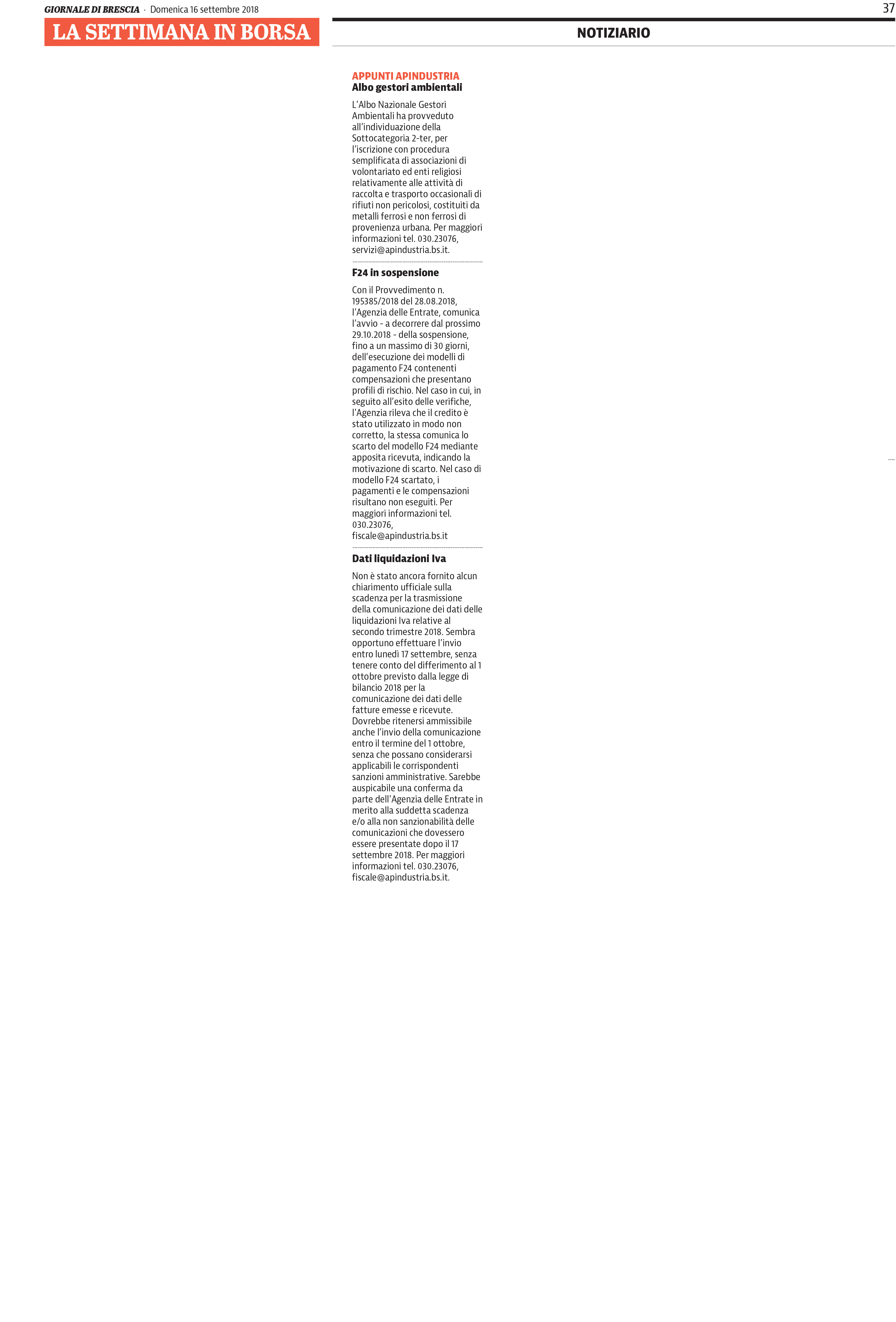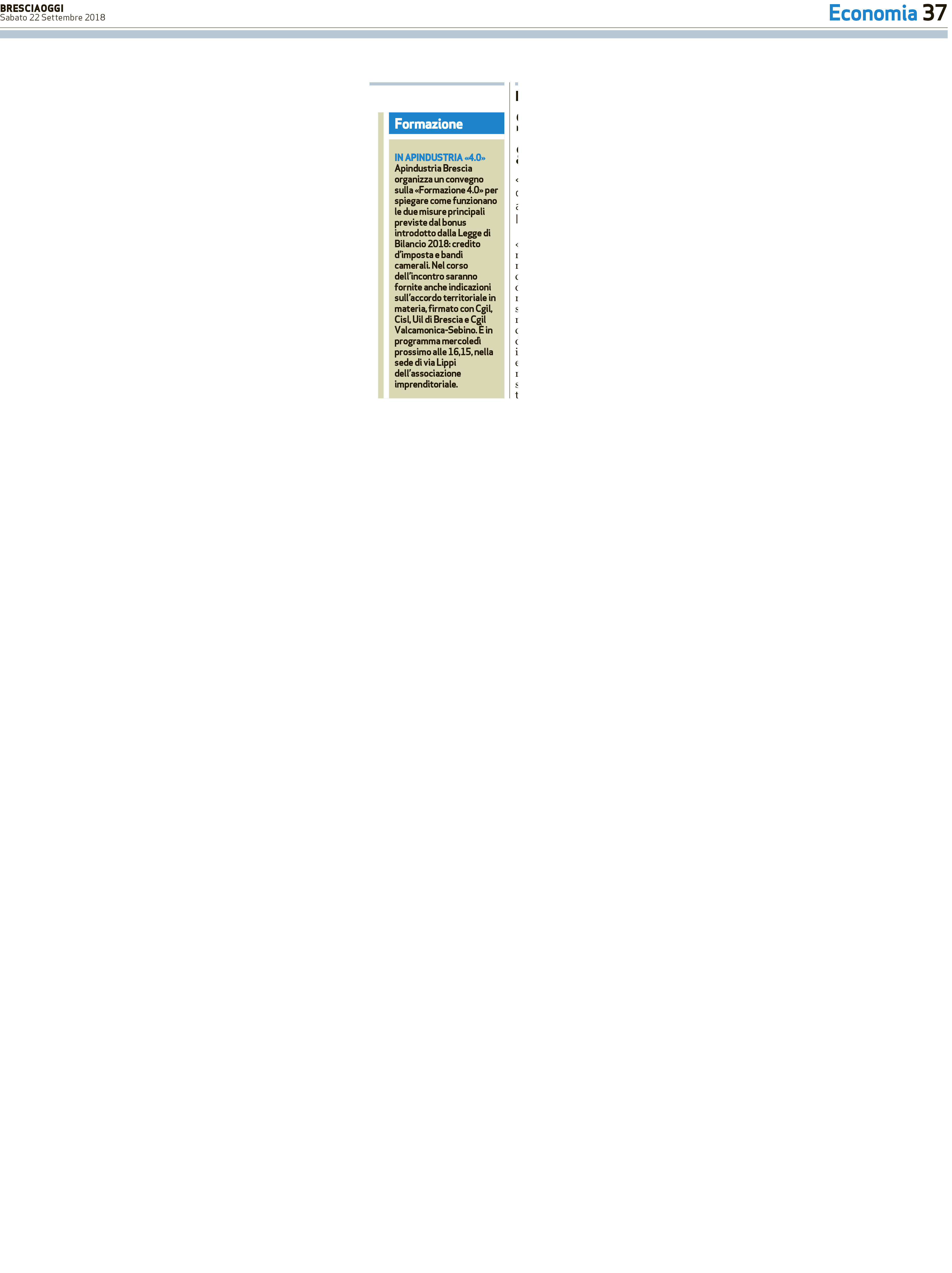 Giornale di Brescia, Besciaoggi, Corriere Sera Brescia del: 2018-09-12