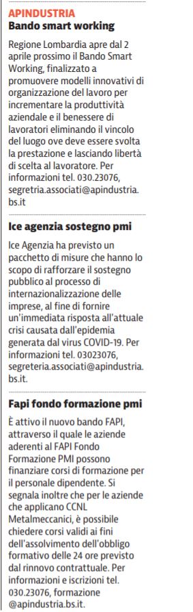 Giornale di Brescia, Corriere Sera, Voce del Popolo, Brescianews.it, QuiBresci, Bresciadue.it del: 2020-03-26